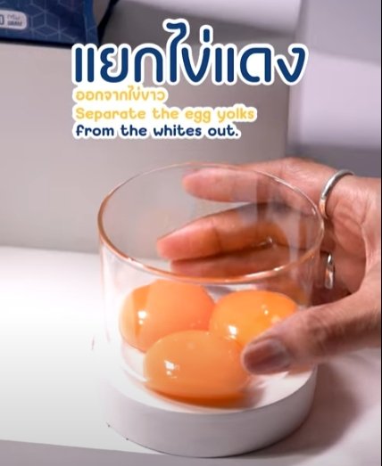 1. ใช้ไข่แดง 3 ฟองโดยแยกไข่ขาวออก