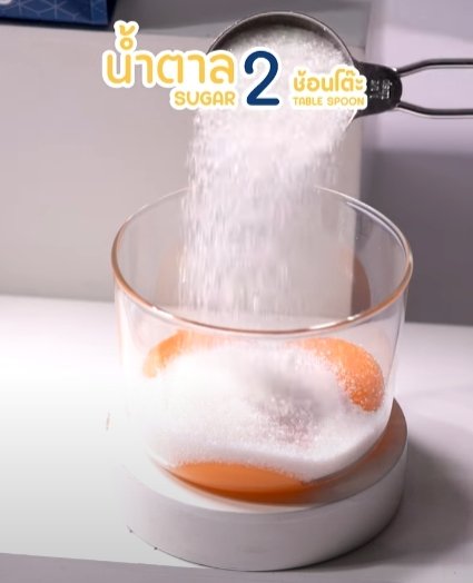 2.เติมน้ำตาลลงไปในไข่แดง 2 ช้อนโต๊ะ