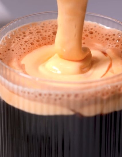 6.เทไข่แดงกับน้ำตาลที่เราตีจนฟูลงไปในกาแฟ