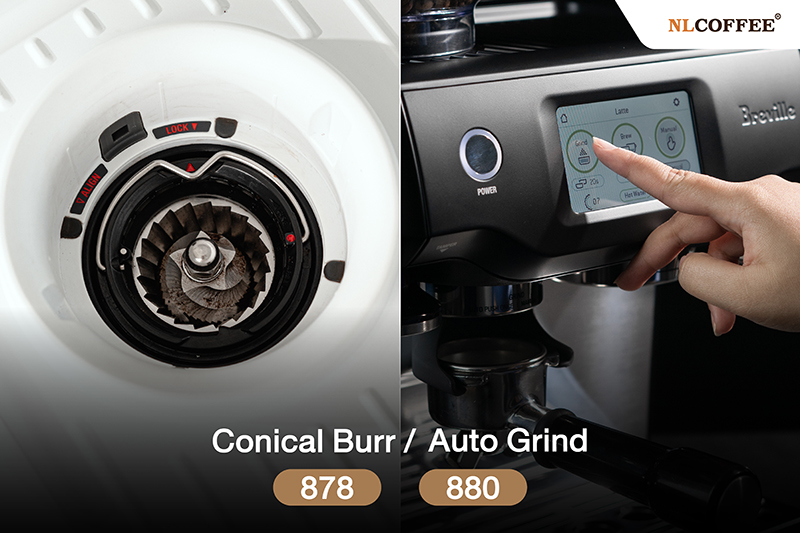 ทั้งสองรุ่น มีเครื่องบดกาแฟมาให้ในตัว เป็นเฟืองบดแบบ Conical Burr ที่ทำให้บดกาแฟได้ความหอมฟุ้ง ปรับตั้งเวลาในการบด ได้ 2 ระดับ