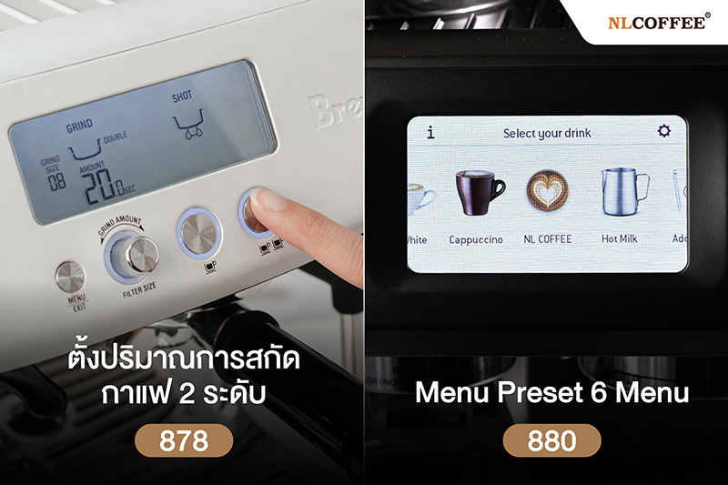 ► รุ่น 880 มีระบบ Menu Preset 6 เมนู ที่มีการตั้งค่าต่างๆ ให้ง่ายต่อการชงกาแฟเป็นอย่างมาก