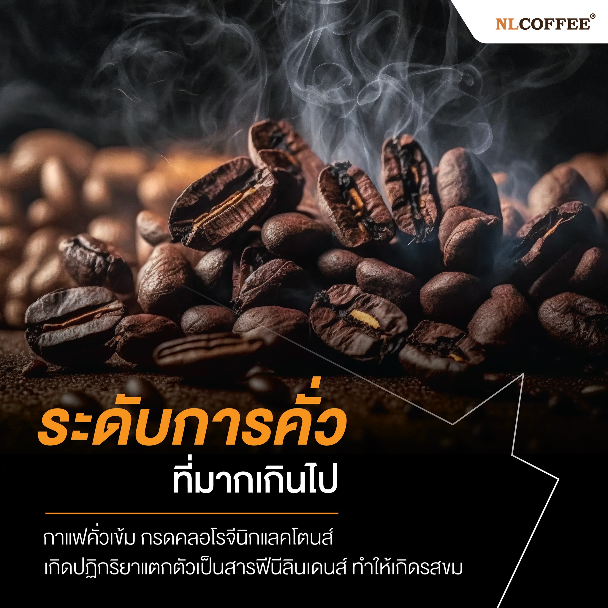 การคั่วกาแฟที่เข้มมากจนเกินไป รับรู้ได้ถึงรสชาติที่ออก ขมไหม้ และกรดความขมในกาแฟที่โดนน้ำร้อนละลายออกมามากเกินไป