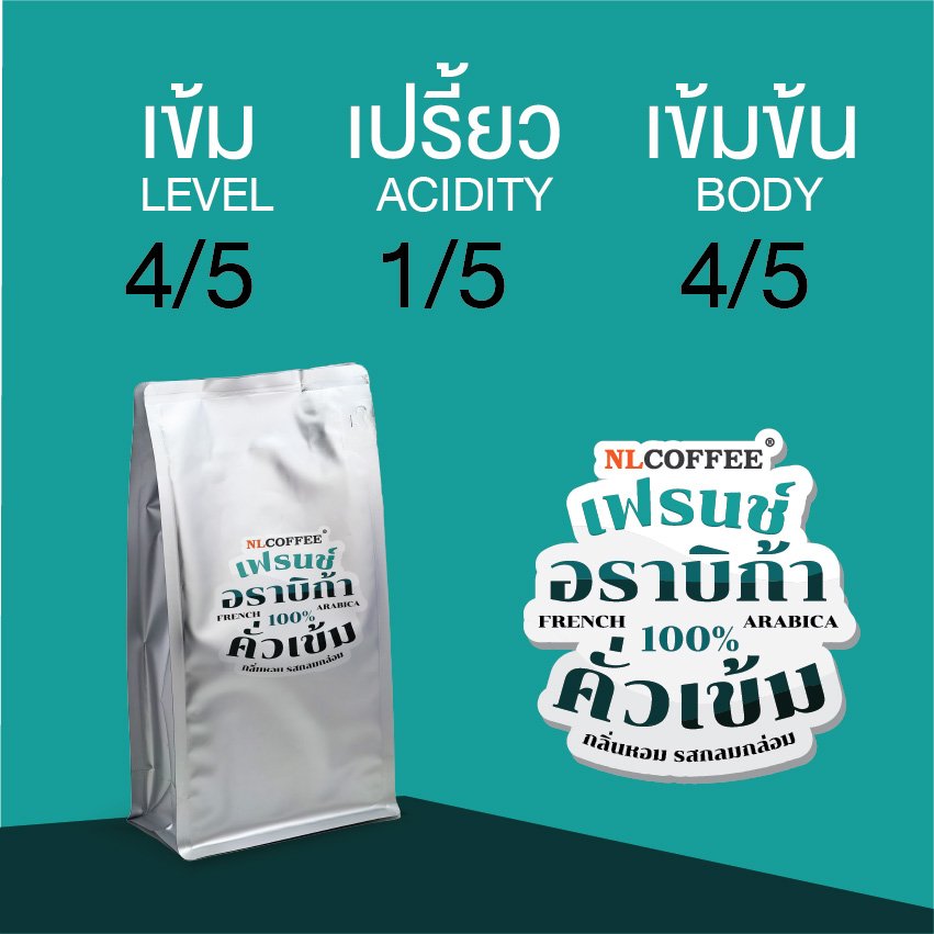 กาแฟอาราบิก้า 100% กาแฟคั่วเข้ม หนักแน่น หอมแบบมีเอกลักษณ์เฉพาะตัว เหมาะสำหรับชง กาแฟเอสเพรสโซ่เย็น เข้มข้นหวานมัน รสชาติมีเอกลักษณ์ตามแบบสไตล์คนไทย ไม่มีความเป็นกรด (เปรี้ยว) กาแฟเข้มเข้ากันได้ดีกับนมข้นหวานและนมข้นจืด