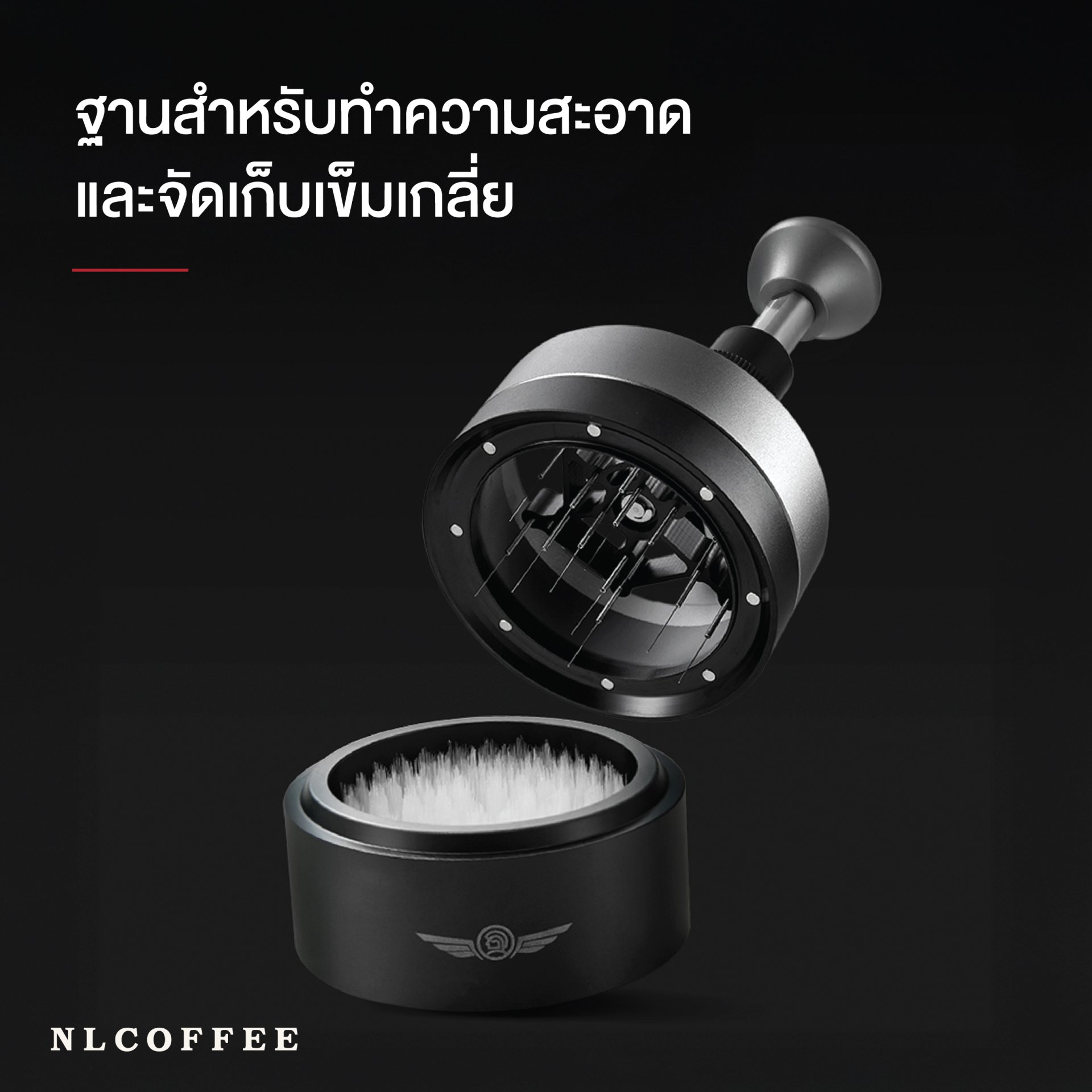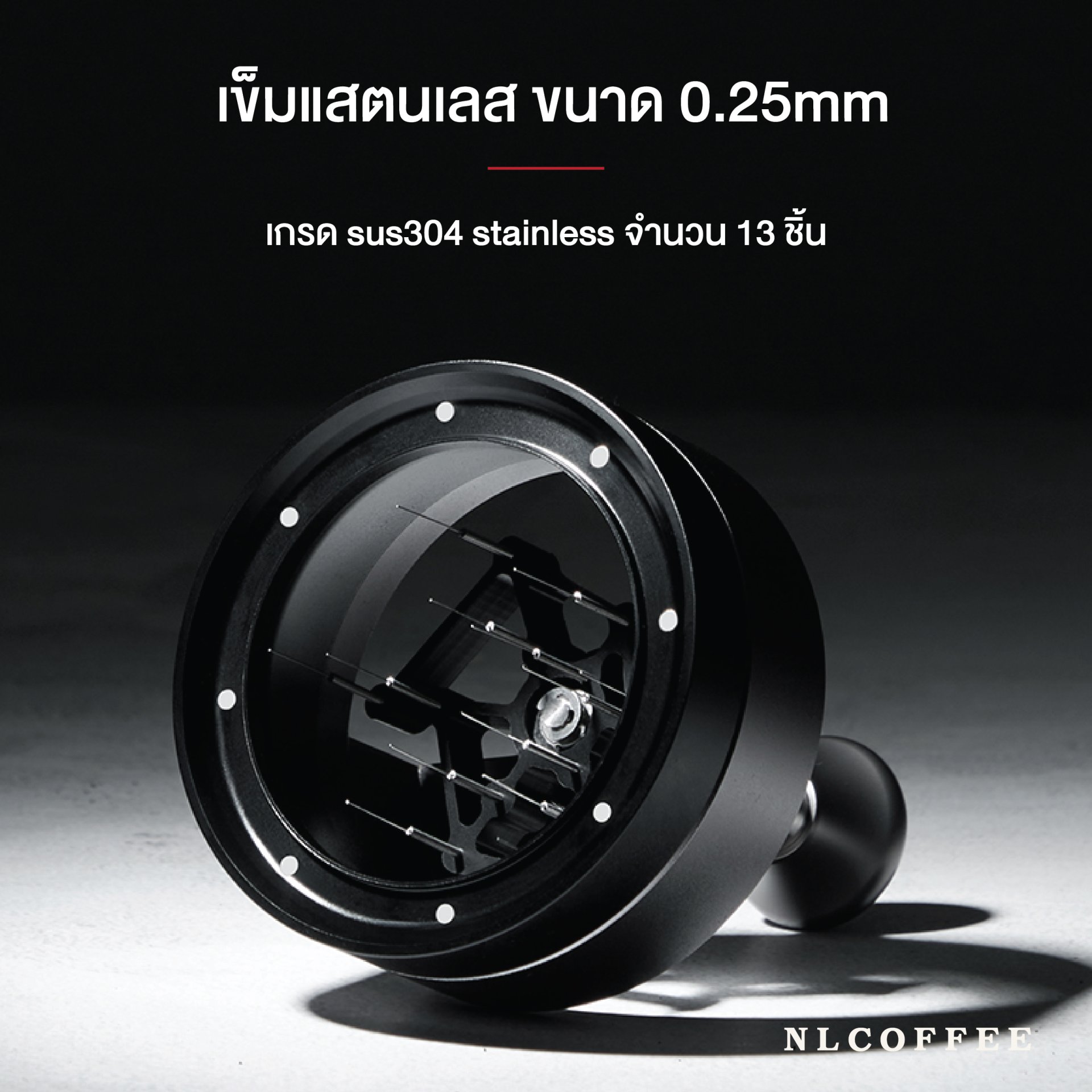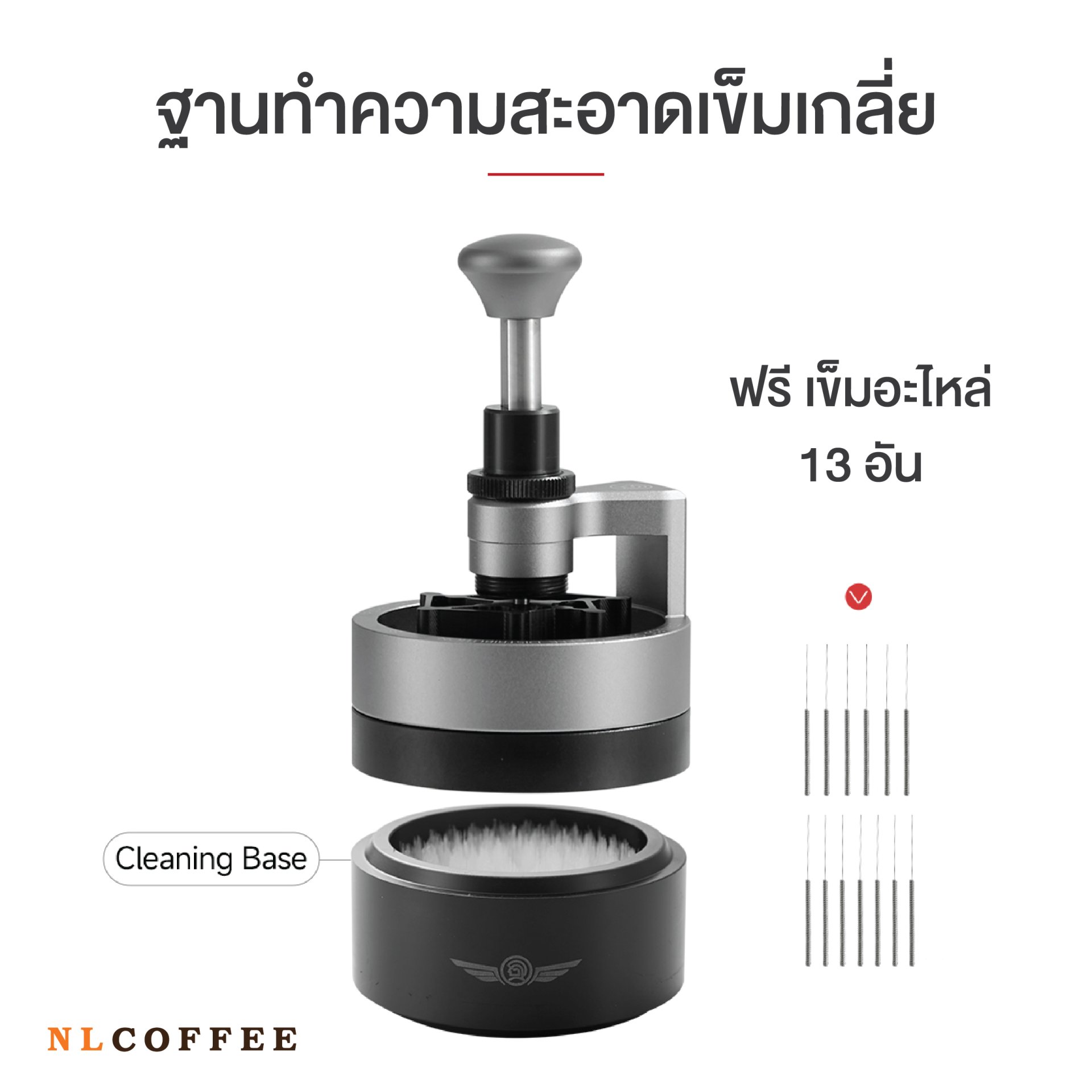 มาพร้อมเข็มอะไหล่ 13 ชิ้น แท่นมีแม่เหล็กยึดด้ามชงขนาด 58 มม. ปรับระดับขึ้นขึ้นลงได้ตามความลึกของตะแกรงชงกาแฟที่นำมาใช้